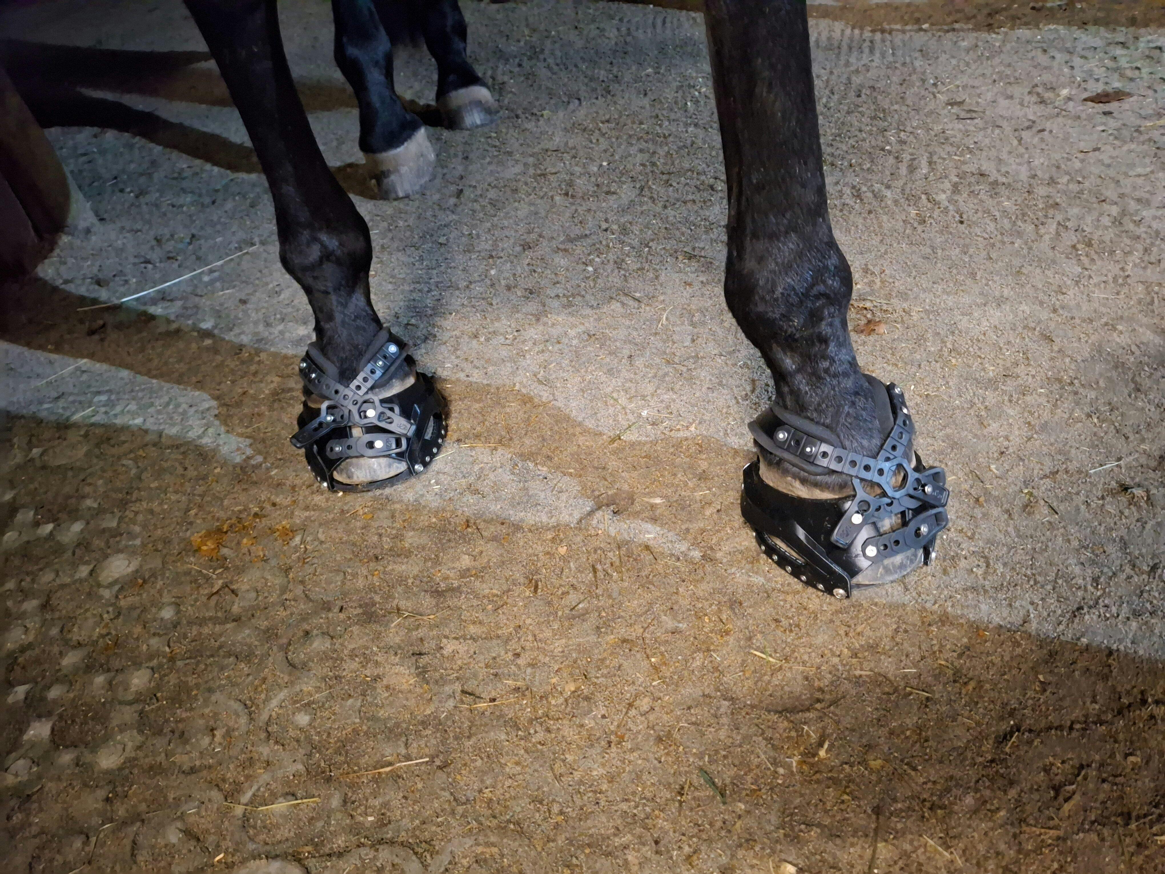 Die Hufschuhe lassen sich mittels BaukastenSystem individuell an jeden Huf anpassen.