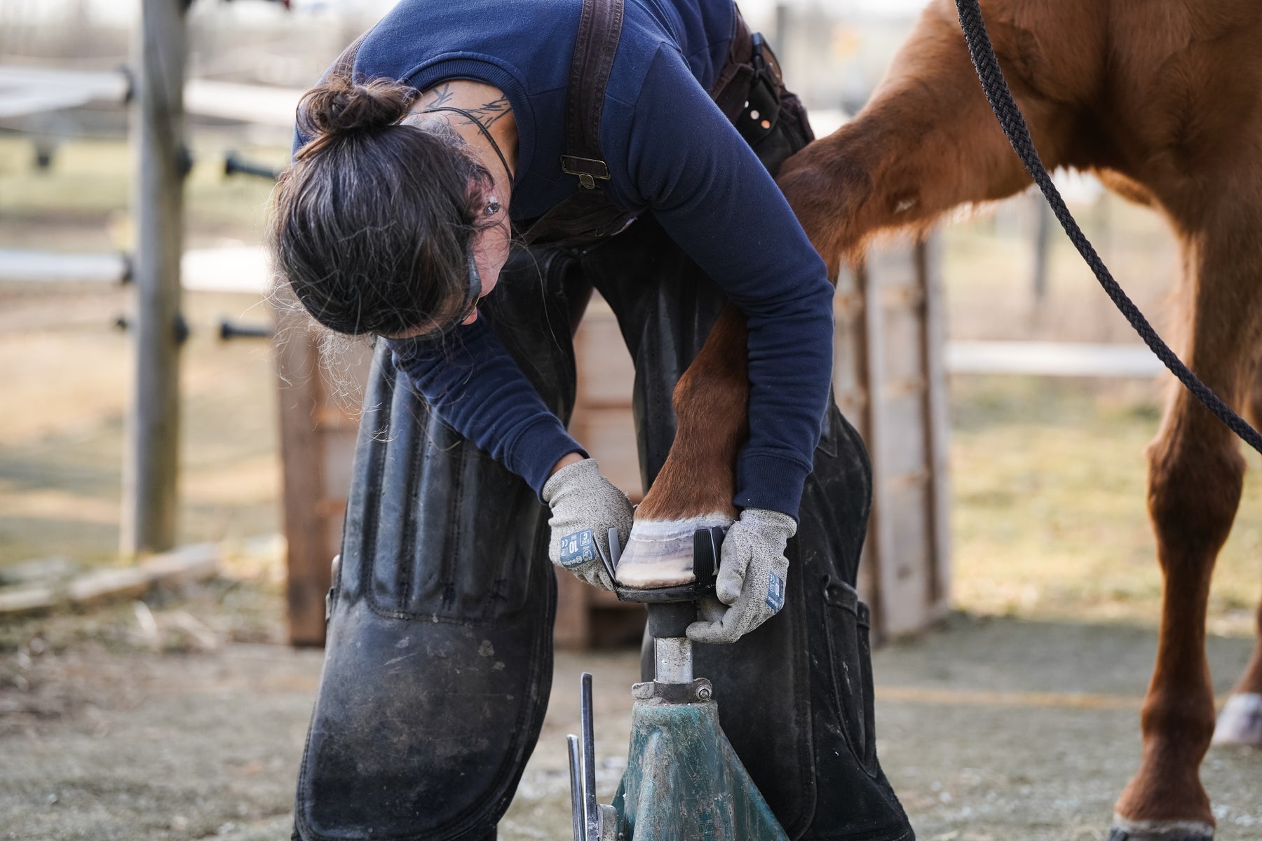 Im Workshop steht neben einem theoretischen Teil vor allem die Praxis im Vordergrund. Das heißt; Anpassen, Schweißen und Kleben, bis die Handgriffe sitzen. Es wird sowohl "Trockenübungen" als auch das Kleben am Huf behandelt.
